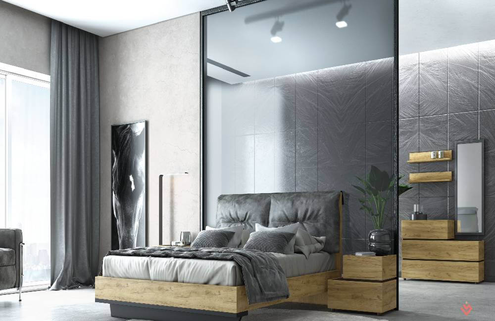Κρεβάτι Loft με ξύλινη βάση, δυνατότητα προσθήκης αποσπώμενων μαξιλαριών, φωτισμού led στο ποδαρικό και μηχανισμού ανύψωσης στρώματος για επιπλέον αποθηκευτικό χώρο.