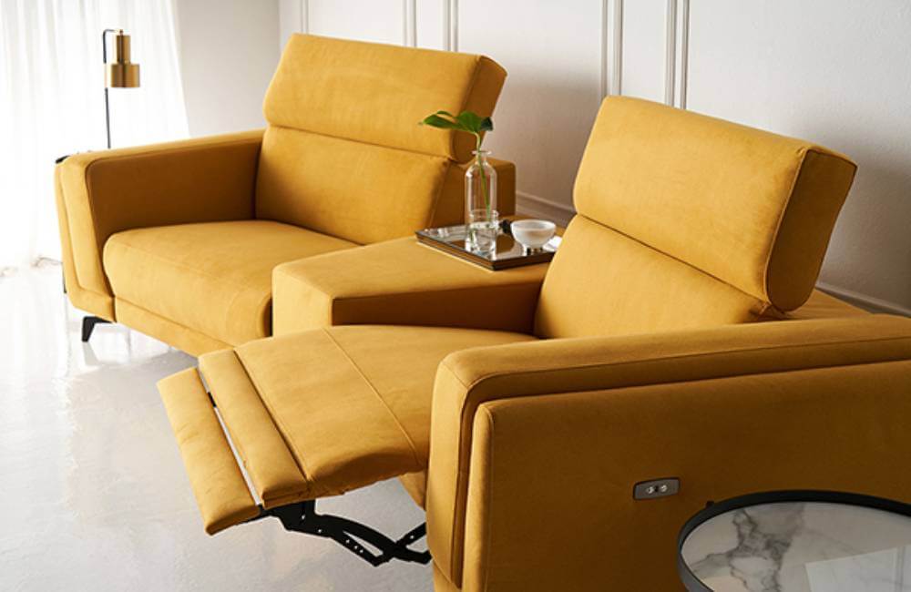 Ο διθέσιος καναπές Zeta με τραπέζιο σκαμπό στη μέση είναι ένας μοντέρνος καναπές power recliner, που συνδυάζει εκλεπτυσμένο στιλ με πολυτελή άνεση.