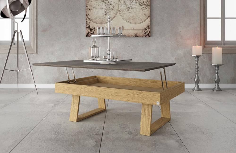 Ρουστίκ προσέγγιση και γήινη διχρωμία σε ένα μοντέρνο τραπεζάκι με ανυψούμενο σερβιτόρο. Ταιριάζει μοναδικά με κάθε στυλ καναπέ. Συνδυάζεται με την τραπεζαρία Delta και πολλές συνθέσεις τοίχου από τη συλλογή μας.