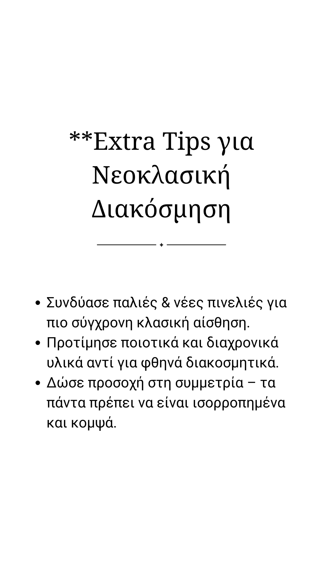 ΣΥΜΒΟΥΛΕΣ ΓΙΑ ΝΕΟΚΛΑΣΙΚΗ ΔΙΑΚΟΣΜΗΣΗ